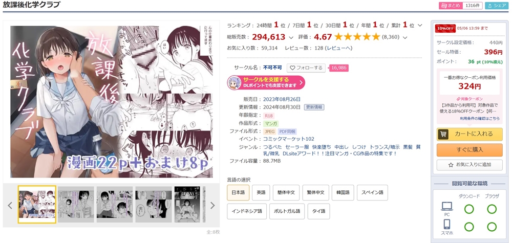 『放課後化学クラブ』をほぼ無料、少しでも安くで読むならDLsiteがおすすめ!