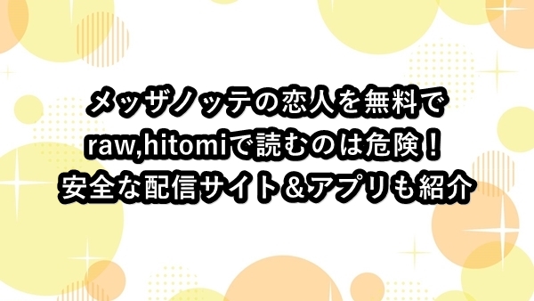 メッザノッテの恋人を無料でraw,hitomiで読むのは危険!安全な配信サイト&アプリも紹介