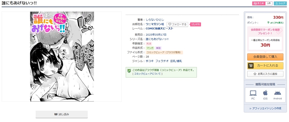 『誰にもあげないっ!!』をほぼ無料、少しでも安くで読むならDLsiteがおすすめ!