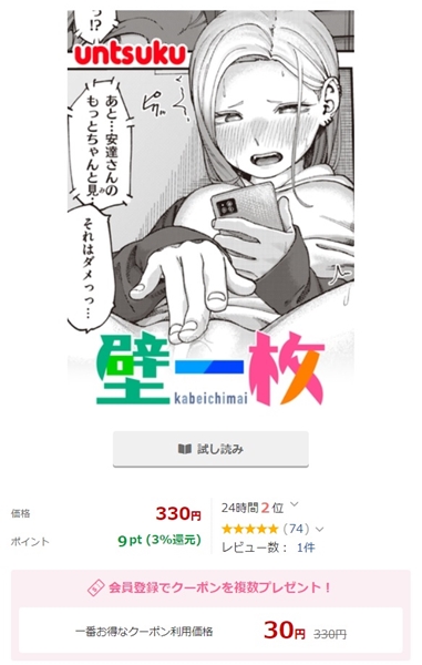 壁一枚みたいな単和作品だと、実質マンガ1本タダになります。