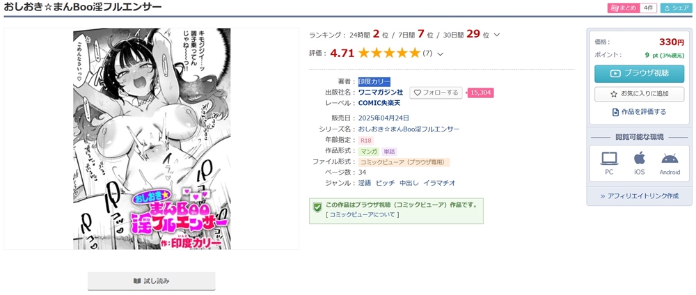 『おしおき☆まんBoo淫フルエンサー』をほぼ無料、少しでも安くで読むならDLsiteがおすすめ!