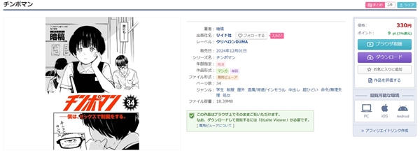 『チンポマン』をほぼ無料、少しでも安くで読むならDLsiteがおすすめ!