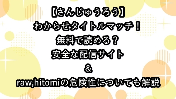 無料でわからせタイトルマッチ【さんじゅうろう】を読むのは危険!安全に試し読みやネタバレ・あらすじがわかる配信サイトも紹介