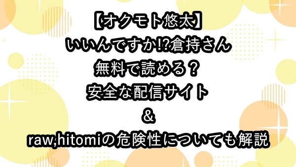いいんですか倉持さん【オクモト悠太】は無料で読める?配信サイト&raw,hitomiの危険性についても解説