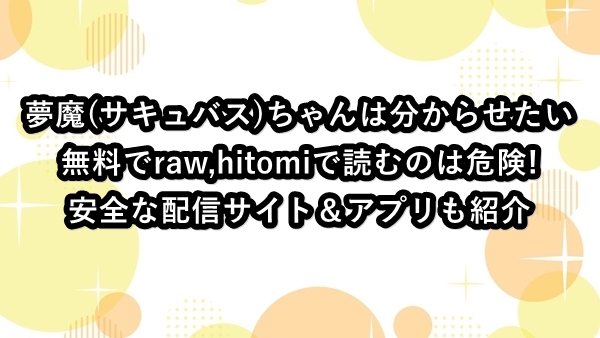 夢魔(サキュバス)ちゃんは分からせたいを無料でraw,hitomiで読むのは危険!安全な配信サイト&アプリも紹介