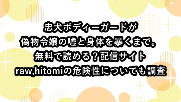 忠犬ボディーガードが偽物令嬢の嘘と身体を暴くまでは無料で読める?配信サイト&raw,hitomiの危険性についても調査