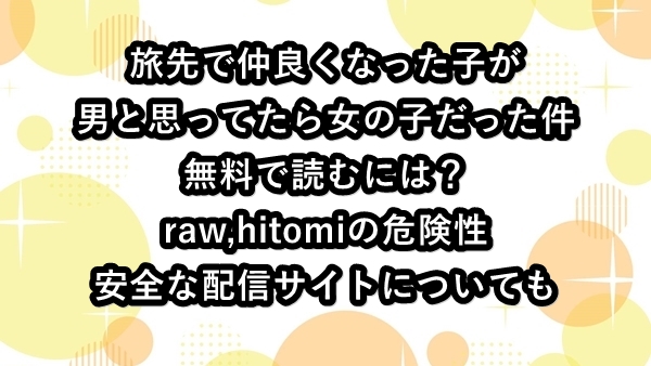 旅先で仲良くなった子が男と思ってたら女の子だった件を無料で読むには?raw,hitomiの危険性&配信サイトについても調査