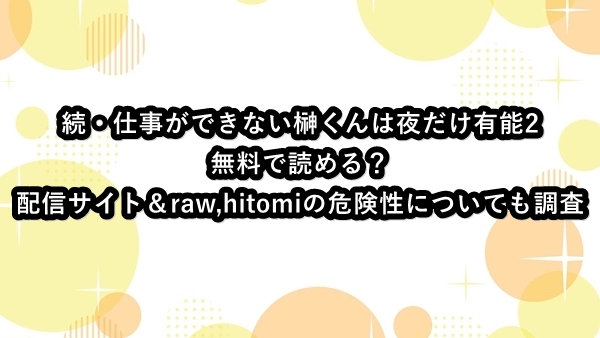続・仕事ができない榊くんは夜だけ有能は無料で読める?配信サイト&raw,hitomiの危険性についても調査