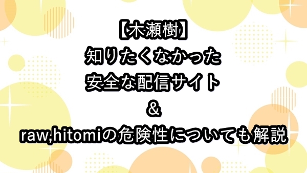 無料で知りたくなかった【木瀬樹】を読むのはダメ!安全な配信サイト&raw,hitomiの危険性についても解説